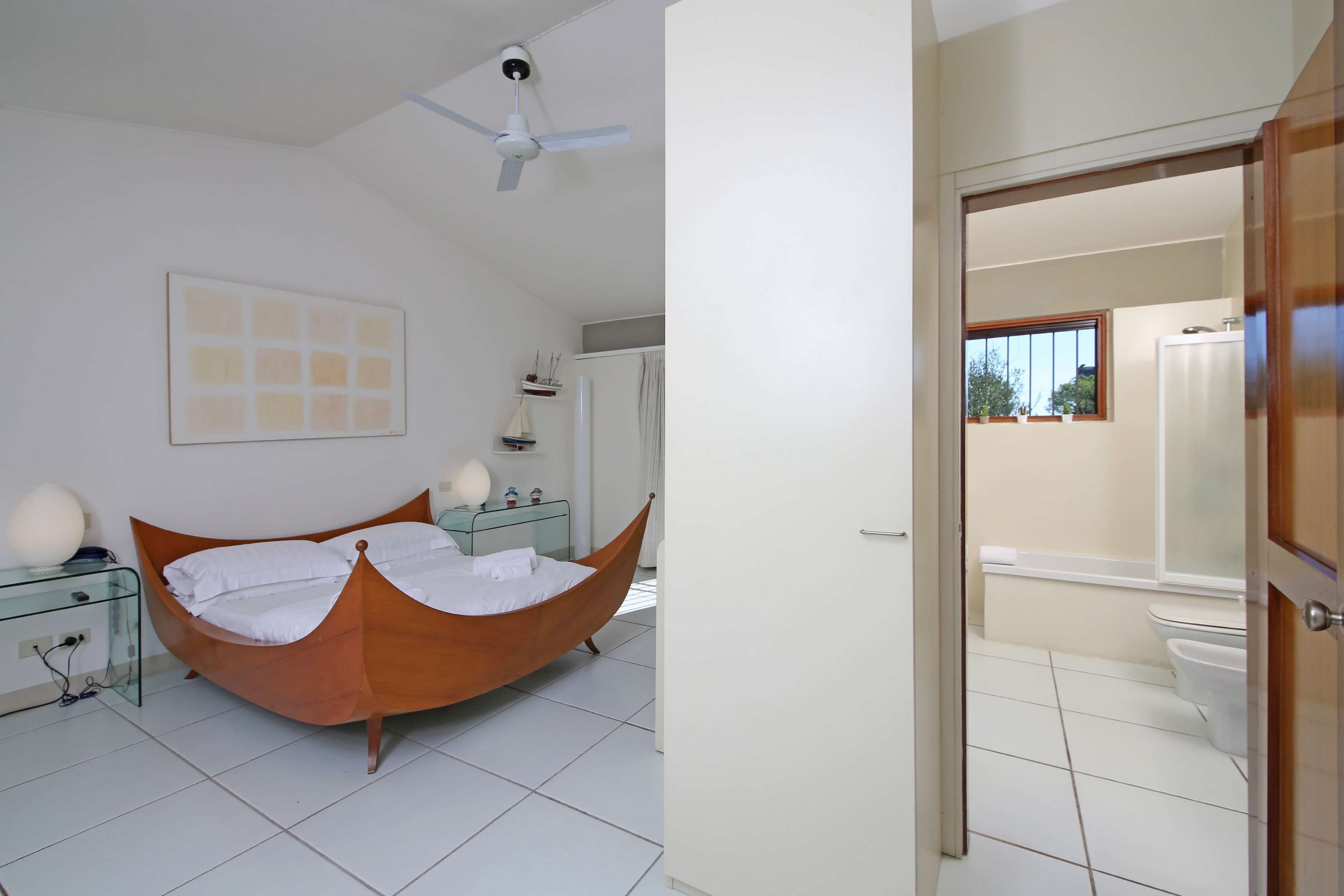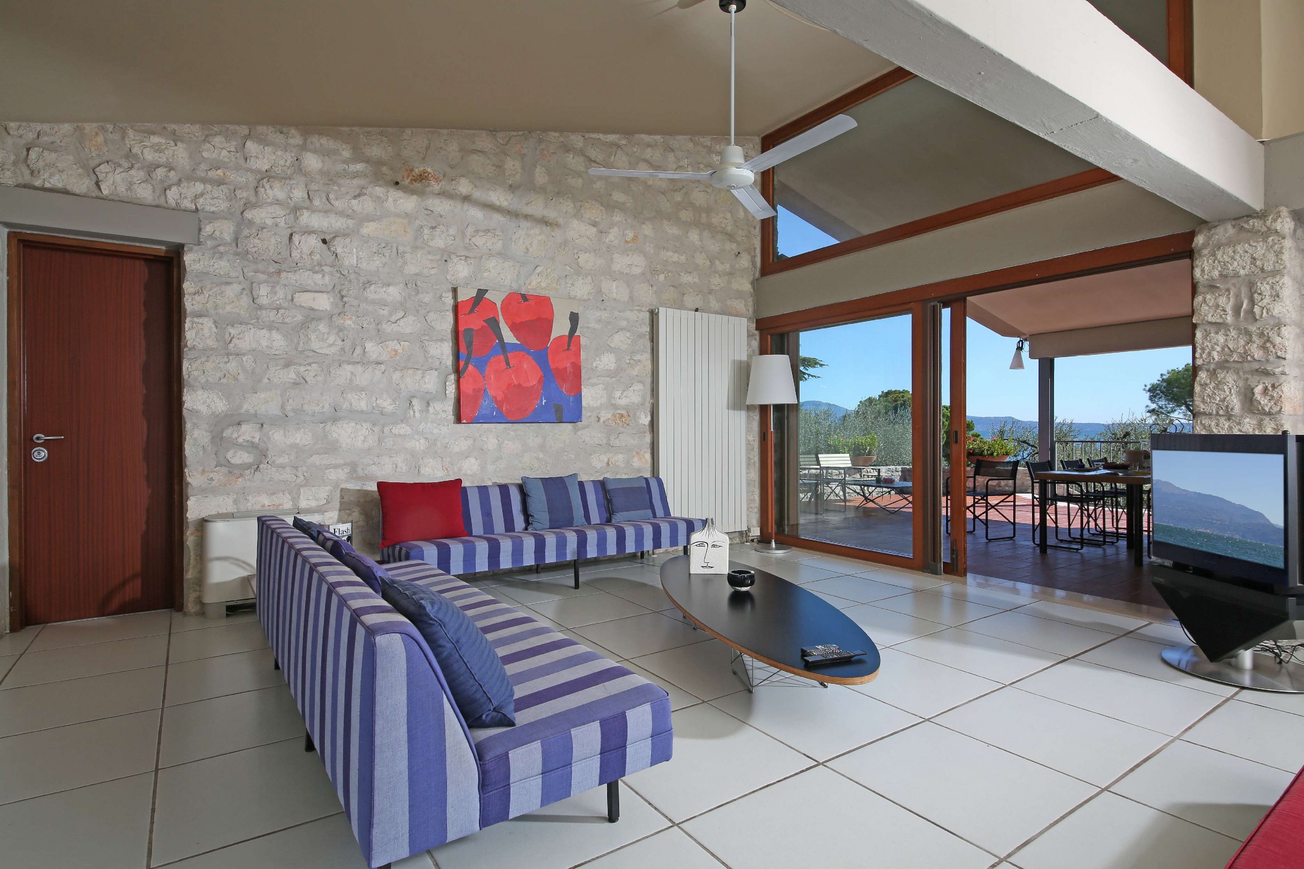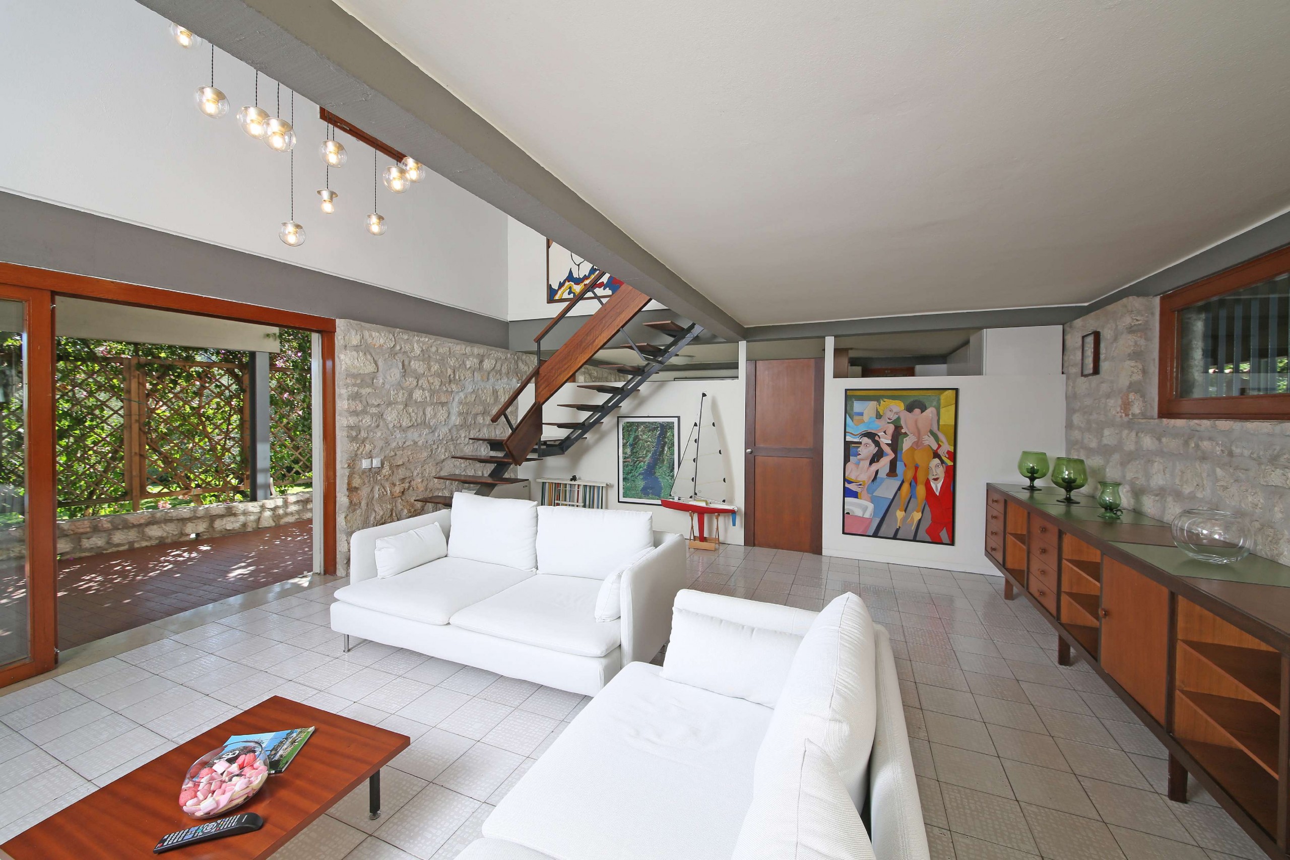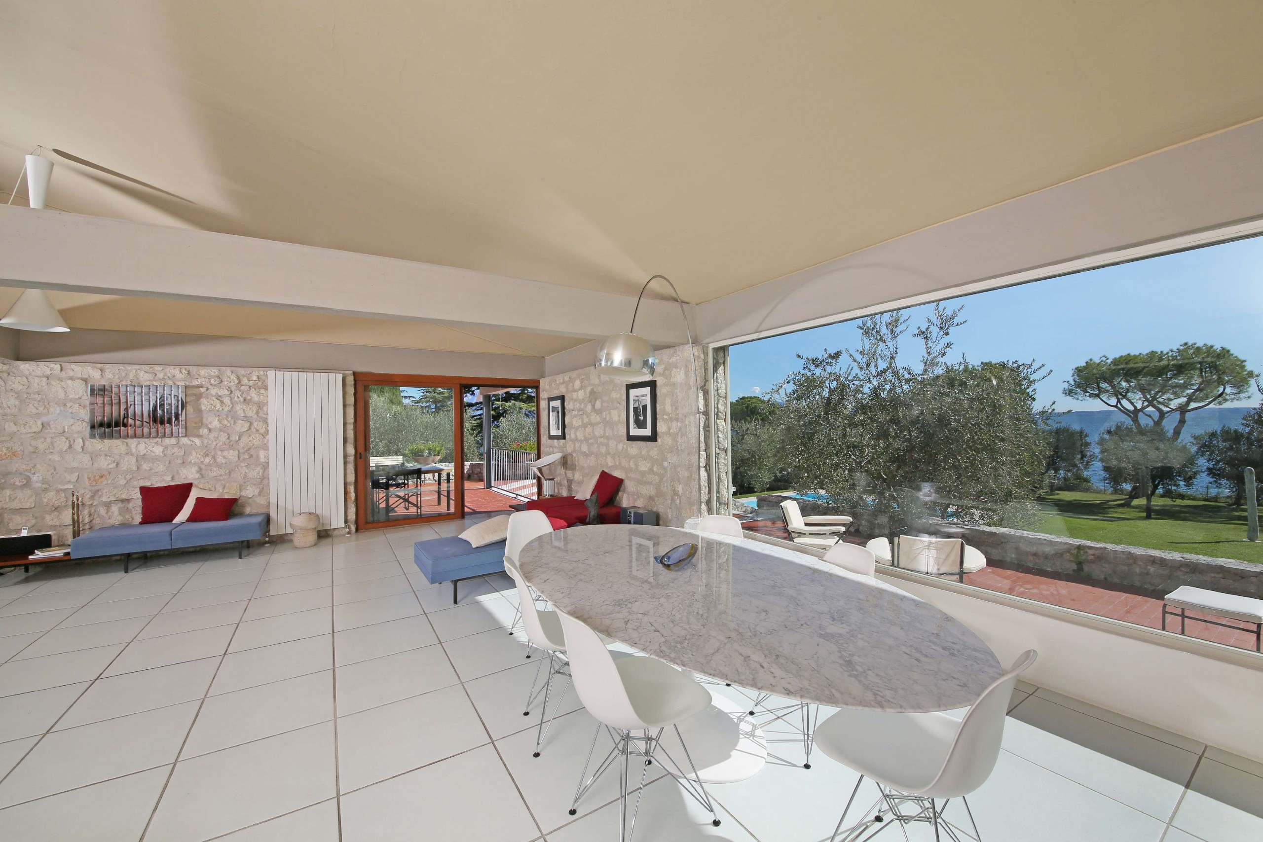 Waterfront villa with private pool, large garden, and stunning views. Sleeps 13 in 5 bedrooms plus an open loft area, with 5 bathrooms. Designed by famous architect, Bruno Fedrigolli, in the late 60s, villa Elena is a living tribute to modern art and design, filled with unique one off artistic masterpieces. In this villa you will find optimum comfort in vintage designer style, large and bright open spaces and big green swathes of garden with ancient olive trees. The villa is filled with extraordinary unique and original pieces that tell a story of modern art in Italy. There is a bed designed and crafted by Arnaldo Pomodoro, bronze and plexiglass sculptures by Marco Lodolo, and marble sculpted masterpieces by Michele Chiossi.
