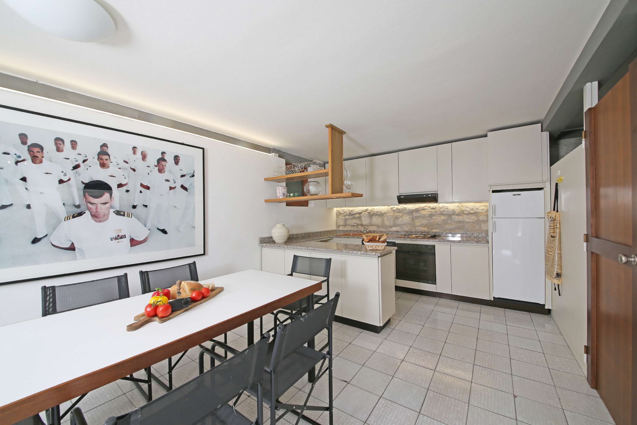 - Indoor/outdoor dining: Inside there is a large dining table for 14 people, and also outside on the covered veranda with breathtaking views for 14 people.