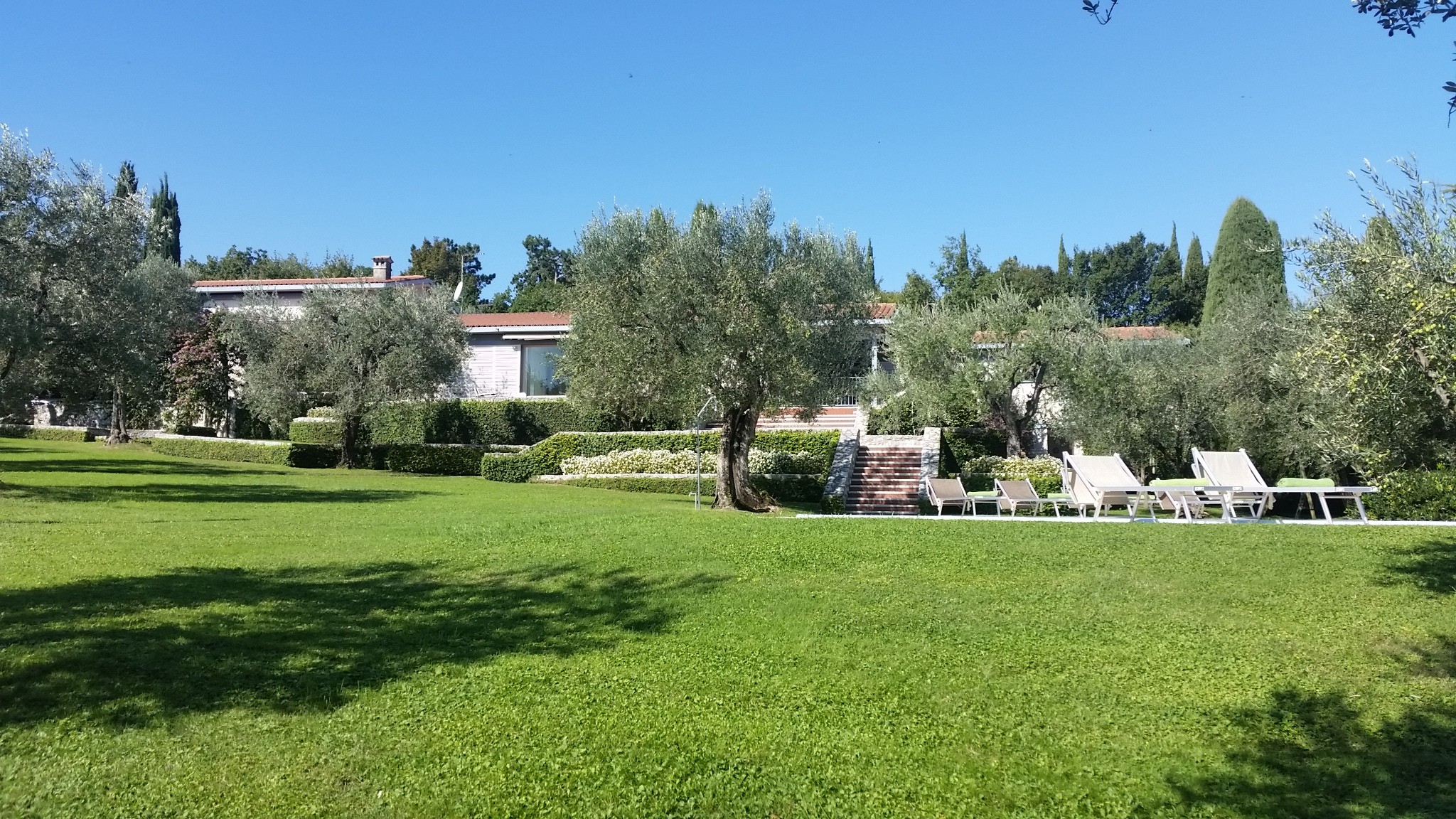 The villa has a great, large and well managed garden with old olive trees . It is completely fenced which was perfect for our two dogs. The direct lake access is the icing on the cake - nothing better than to start from the property with your own SUP in the morning. We will certainly be back.